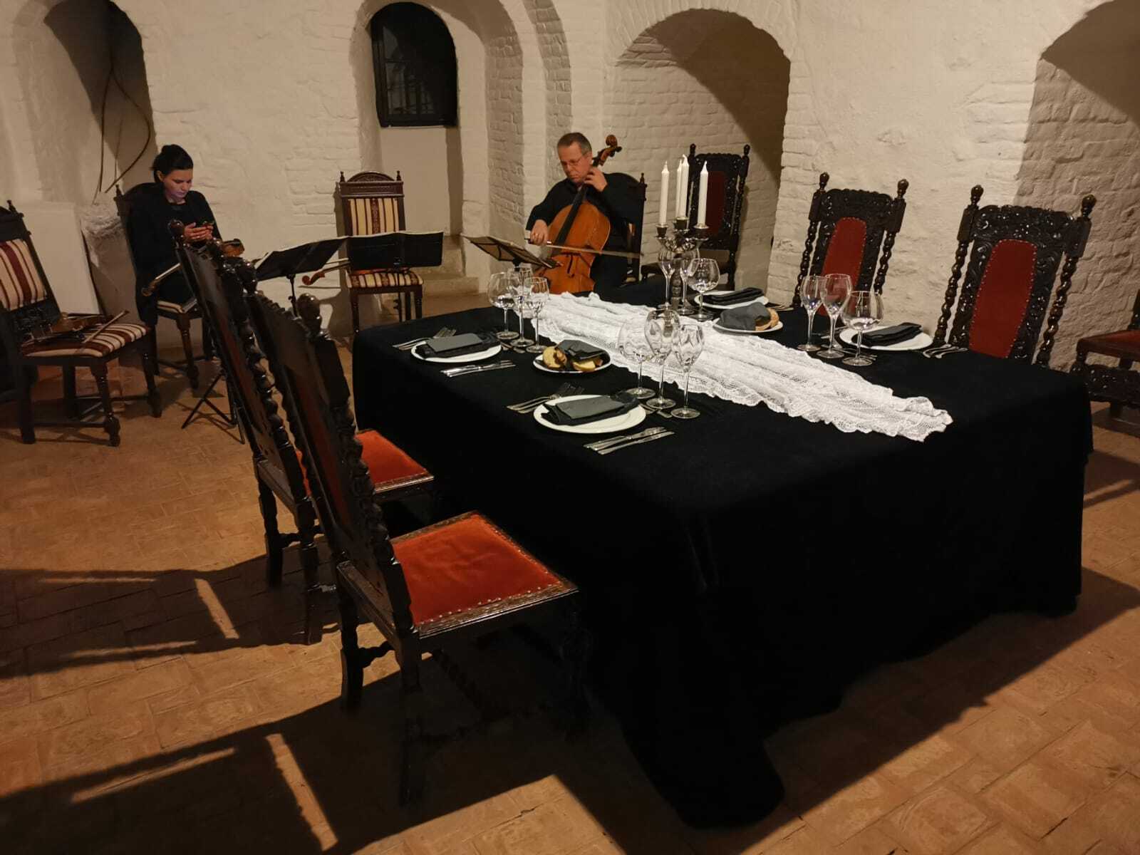 Welcome cocktail in the courtyard of Dracula Castle