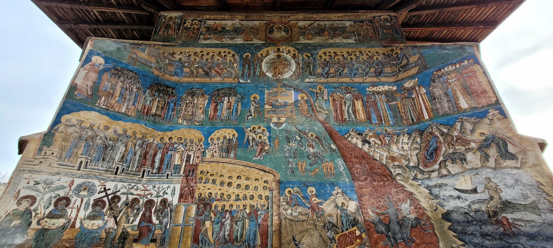 In a few minutes, we arrive in Bucovina, the land of Beech Trees. Bucovina is known for the painted monasteries with original frescoes dated back to the 15th century. From the top will circle all of them as follows: Voronet, Sucevita, Moldovita, and Humor monasteries. In the end, we`ll land at Radauti Airfield and we are heading to lunch at the most exclusivist hotel in the region – Popasul Domnesc. After serving a traditional lunch cooked by their most known chef with organic products from the local farmers our local expert will invite you to discover the most famous monastery – Voronet. It is known as the Sistine Chapel of SE Europe and is famous for “ Last Judgement”. All frescoes are still original and very elaborate.